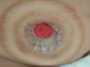 The patient was a 47-year-old man with a history of prostate cancer diagnosed 5 years earlier with bone metastases in the right acetabulum (stage pT4N1M1). The patient had undergone a radical cystoprostatectomy with a Bricker-type ureteroileostomy. He received hormone therapy with luteinizing hormone-releasing hormone (LHRH) agonists and antiandrogens in addition to external beam radiation therapy. The patient reported the gradual development of pruritic lesions in the area around the stoma over the previous 6 months.