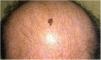 A 54-year-old man visited our department for assessment of a skin lesion in the parietal area, which had been growing gradually since it was detected the previous year. The lesion was a dark-brown and black macule with irregular borders, measuring 15 mm at its largest diameter (Fig. 1).