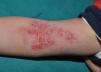 CantharidinCantharidin is a vesicant agent produced by the beetle Lytta vesicatoria.23 When applied to the skin, this phosphodiesterase inhibitor produces an intraepidermal blister that rarely leaves a scar owing to its superficial location.17 It is used at concentrations of 0.7% to 0.9%, and after application should be left in place for 2 to 4hours without occlusion and subsequently removed with soap and water.17 Other authors have proposed that in cases of resistant lesions cantharidin should be allowed to dry for 5 to 10 minutes and then occluded with adhesive tape.24 The treatment can be repeated at intervals of 1 to 4 weeks. In a retrospective study of 300 children with MC who were treated with cantharidin, a cure rate of 90% was achieved with an average of 2.1 treatments.18 The treatment itself is painless, but within 24 to 48hours painful blisters form, bringing the added risk of secondary superinfection. Cases of lymphangitis with lymphedema following cantharidin treatment have also been reported.25 Given these risks, cantharidin is not recommended for MC of the face or anogenital region.16