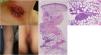 (a) Well-demarcated deep ulcer on the central vein catheter insertion site. (b) Painful erythematous nodules on the forearm (arrow). (c) Ulcerative lesion on the sacral area. (d) Histopathology examination showing lobular panniculitis (H–E, ×20). (e) Higher magnification showing neutrophil infiltration inside the fat tissue (H–E, ×200).