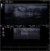A, B-mode ultrasound image showing a poorly delimited, largely hypoechoic lesion containing tubular hypoechoic structures and scattered hyperechoic areas. B, Spectral Doppler ultrasound image, showing focal intralesional hypervascularization corresponding to high-flow, low-resistance vessels.