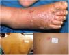 We report 2 new cases of allergic contact dermatitis due to tea tree oil. The first case (Fig. 1) is a 4-year-old girl who presented eczema-like lesions on the feet after spending 10 days at a summer camp. The patient was diagnosed with tinea pedis and had undergone treatment with a product containing tea tree oil. The second case (Fig. 2) is a 42-year-old man who presented eczema-like lesions on the eyelids and on the feet, which had appeared more than a year earlier and had worsened following topical application of tea tree oil during the last episode.
