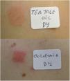 In both cases, we performed an epicutaneous study, applying the standard battery of the Spanish Cutaneous Contact and Allergic Dermatitis Research Group (GEIDAC) and the series of plants and cosmetics (Chemotechnique Diagnostic®). Moreover, in the first case, a study was performed with ɑ-pinene and limonene, components of the tea tree that were available to us. Readings were taken on D2 and D4, as per the criteria of the International Contact Dermatitis Research Group (ICDRG) and positive results were found for colophony in the standard series and for tea tree oil in the cosmetic series in both cases. The diagnosis in both patients was allergic contact dermatitis due to tea tree oil with present relevance.