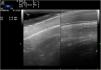 Ultrasound with a linear probe (22MHz) revealed thinning of the scalp in the cicatricial areas (Fig. 2, left) relative to the healthy scalp (Fig. 2, right). This thinning was due mainly to loss and structural alteration of the adipose tissue. There were no follicles, and no active inflammation in color Doppler mode.