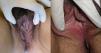 The second case is that of a 51-year-old woman who presented with painful erosions and vulvar edema dating from 5 months earlier. For 6 years she had also had recurrent perianal suppurative plaques and fissures that had been diagnosed as hidradenitis suppurativa. Physical examination revealed the granulomatous appearance of the vulvar mucosa, erosions on the inside of the labia minora (Fig. 3), and longitudinal fissures in the gluteal cleft. Two vulvar biopsies revealed a dense lymphocytic infiltrate of epithelioid cells and multinucleated giant cells forming granulomas without central necrosis (Fig. 2C and D). Additional tests (complete blood count, biochemistry, cultures, and chest radiograph) were normal or negative, except for a slightly elevated ESR of 25mm/h. Crohn disease was ruled out after colonoscopy with biopsies. The patient had no systemic symptoms during the 18 months of follow-up and responded partially to treatment with oral corticosteroids but showed no response to salicylates or to adalimumab (40mg/15d), which was therefore suspended after 3 months.
