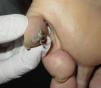 After taking the medical history and the physical examination of the patients, the primary tumor was located in both patients: the first patient had a dark, keratotic pigmented lesion measuring 1.5×1cm, with the Hutchinson sign, on the ball of the left big toe (Fig. 1). The second patient had a hyperpigmented lesion measuring 2×1.5cm in diameter in the left parietal region, with a characteristic atypical dermoscopic pattern (Fig. 2). In both cases, the lesion was evident and was located on a region of the skin that should be examined given the site of the lymph node metastasis. Certain care in the examination was, however, required because the lesion was located on an area of the scalp covered by hair in one case and in the acral most part of the body in the other.