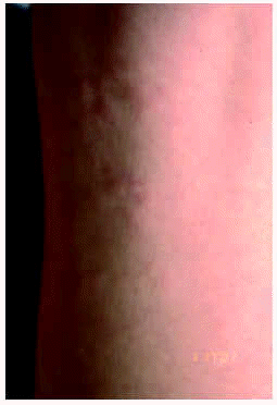 Ninguno de los familiares de primer grado del paciente presentaba lesiones cutáneas similares o relevantes.