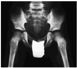 Fig. 3.--Lesiones de osteopoiquilosis en las caderas del paciente.