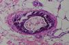 A skin biopsy of the affected area revealed superficial ulceration with necrosis of the superficial dermal collagen, as well as extensive calcification and intimal proliferation in multiple arteries and arterioles (Fig. 2). The calcium deposits in the blood vessel walls were more visible with Von Kossa staining. As there were no extravascular calcium deposits or fat necrosis, the diagnosis of calciphylaxis was confirmed. Because the patient had normal levels of protein C, protein S, parathyroid hormone, calcium, and serum phosphate, a diagnosis of atypical calciphylaxis was established.