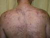 Erupción papulopustulosa en paciente con tratamiento con everolimus por astrocitoma subependimario de células gigantes asociado a esclerosis tuberosa. Esta erupción se asemeja clínicamente a la desarrollada con inhibidores del factor de crecimiento epidérmico. Se caracteriza por la aparición, 2-4 semanas tras el inicio del tratamiento, de pápulas y pústulas centrofoliculares, monomorfas, de prurito variable, sin comedones ni quistes, que asientan preferentemente en el tronco.