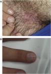 A 29-year-old man was seen for lesions in the inguinal, intergluteal folds that had appeared 2 months earlier, without other associated lesions of the skin or mucosa-f. In addition (Fig. 1A), he presented lesions of the nails that he said had been present since the age of 15 (Fig. 1B). Interestingly, he reported that his mother also had similar skin and nail lesions that had appeared during adolescence.