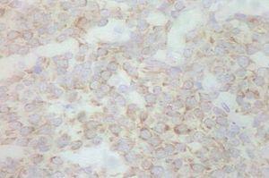 Fig. 5.—Enolasa neuroespecífica. Positividad citoplasmática difusa. (Hematoxilina-eosina, ×200.)