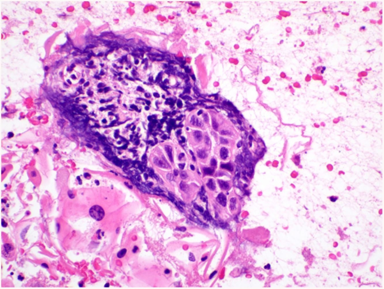 FNAs with smears have been well studied in a variety of dermatological lesions by a Spanish group,1,8–13 with reasonably good correlation between cytology and histology diagnoses. In a letter to the editor, this group emphasizes the benefits of FNAs and smears as being low cost and rapidity, noting that additional cell block generation would be more costly and time consuming, rendering the technique less appealing.14 While these statements hold true, we would like to highlight that cell blocks provide additional information and may be of interest for specific IHC or molecular studies that cannot be conducted on smears for more ambiguous lesions.