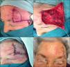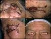 Mujer de 78 años con recidiva de carcinoma basocelular que afecta a todo el cuerpo de la ceja izquierda (fig. 4A). Se realiza exéresis de la lesión produciendo un defecto de gran tamaño, extirpando también la cola de la ceja para que pueda rotar el colgajo (fig. 4B). Posteriormente se reconstruye mediante colgajo de rotación superior de frente, con triángulo de descarga de Burow (fig. 4C). El resultado al mes de la intervención se aprecia en la figura 4D.