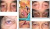 Examples of complete treatment taking into account the underlying pathophysiology. Images of severe inferior ectropion, bilateral (A) and right side (B) with involutional components (laxity of the lateral canthal tendon and disinsertion of retractors) and cicatricial components (shortening of the anterior lamella due to chronic actinic damage). Correct treatment should combine different techniques aimed at correcting the cause of the process; in these cases we performed a heteropalpebral flap in association with anterior lamella (*), retractor surgery (**), and surgery of the lateral canthus (***). A’ and B’, Images at 4 months after surgery of the same patients: correct positioning of the lower eyelids can be observed, without ectropion or residual retraction, with anatomic and functional restitution of the ocular surface.
