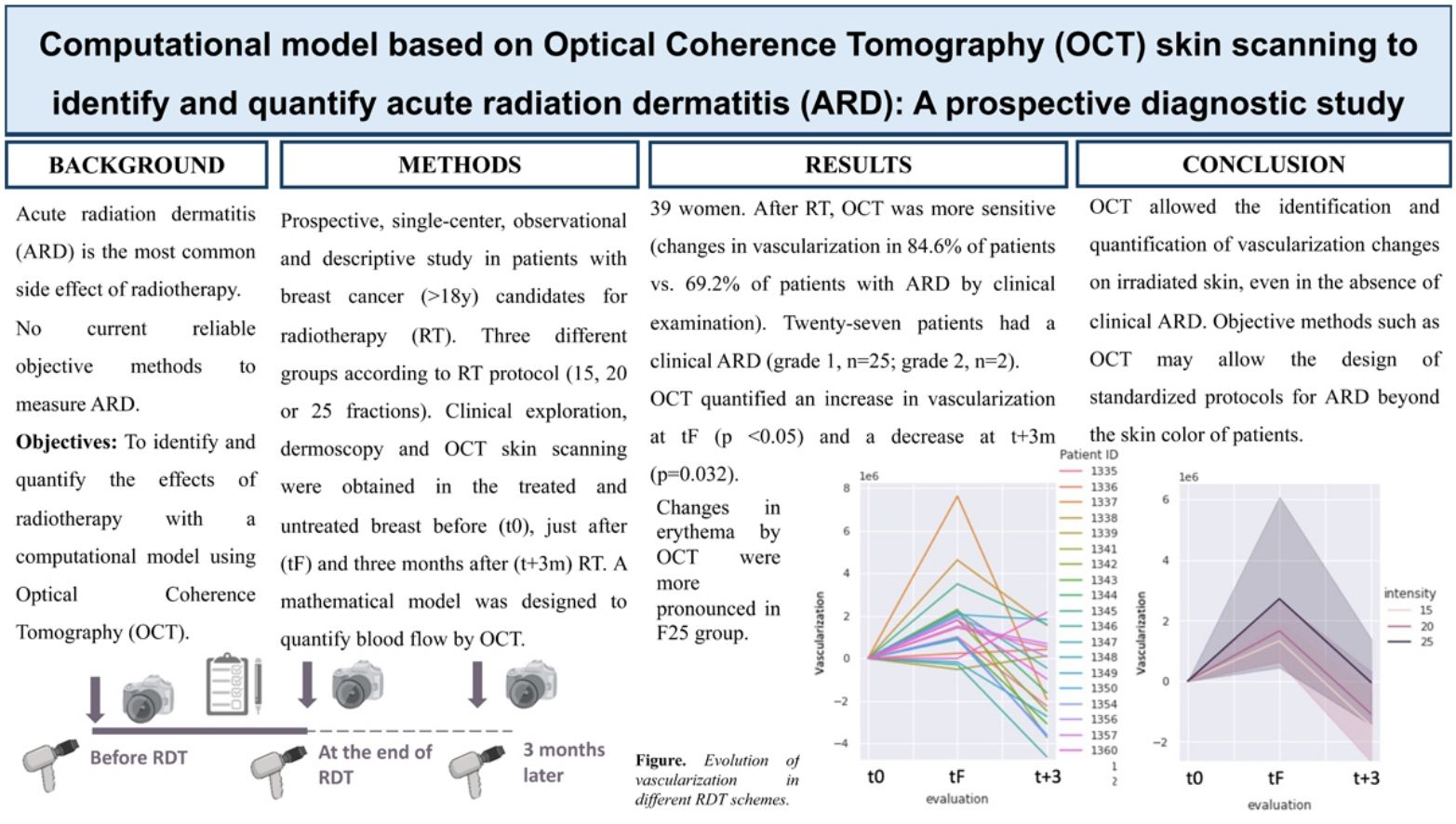ConclusionAn OCT computational model allowed for the identification and quantification of vascularization changes on irradiated skin, even in the absence of clinical ARD. This may allow the design of standardized protocols for ARD beyond the skin color of the patients involved.