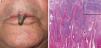 El principal factor de riesgo del carcinoma epidermoide es el daño solar crónico, y es frecuente que aparezca sobre áreas fotoexpuestas como cara y labio inferior, afectándose el labio superior solo en el 2-12% de los casos. El cuerno cutáneo se caracteriza por ser una lesión tumoral hiperqueratósica de aspecto cónico, asociado a diferentes entidades benignas (queratosis seborreicas, verrugas vulgares), premalignas (queratosis actínicas) o malignas como el carcinoma epidermoide. Ante la duda o sospecha de lesión maligna se requiere el examen histológico mediante biopsia escisional que contenga la base de la lesión. Un adecuado diagnóstico y tratamiento del carcinoma epidermoide labial es muy importante debido a su capacidad de producir metástasis.