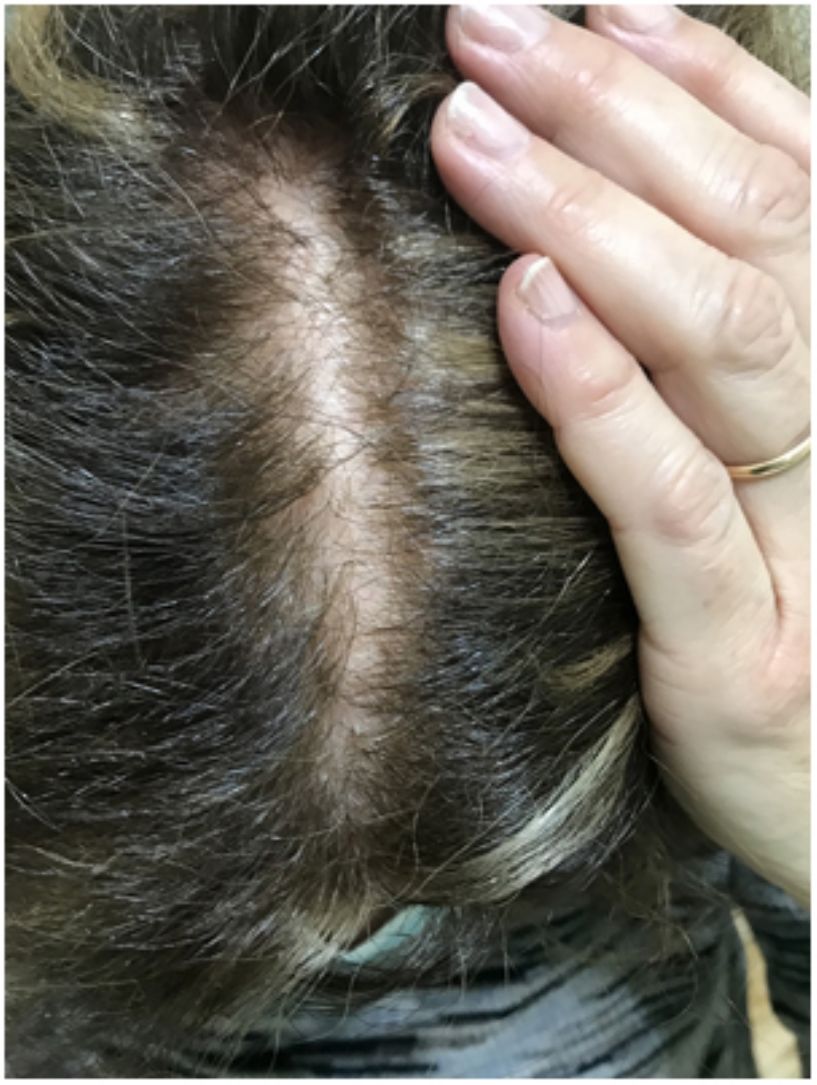 El CCS puede coincidir o no con alguna forma de alopecia. Ya hemos mencionado más arriba14 que la alopecia, con mayor frecuencia el efluvio telógeno o la androgénica, acompaña muchas veces al CCS, sobre todo si cursa con tricodinia, y también, que el tipo de alopecia o la intensidad de esta no tienen relación con la intensidad de los síntomas y signos del CCS. Muchas veces, no obstante, es la alopecia la que pone el foco de atención sobre el cuero cabelludo, estimulando la percepción de la sensibilidad subjetiva15.