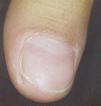 Actualmente la flacidez cutánea de la pared abdominal de la paciente permanece estable, en tratamiento con emolientes y con la recomendación de realizar ejercicios aeróbicos, en función de la añadida hipotonía de los músculos de la pared abdominal. Las estriaciones longitudinales de las uñas han desaparecido espontáneamente, observándose, en este momento, únicamente algunas depresiones puntiformes (fig. 6).