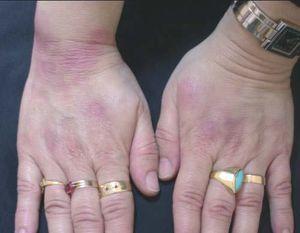 La dermatosis neutrofílica del dorso de manos es un cuadro clínico de descripción reciente. Tanto la presentación clínica como los datos de laboratorio, los hallazgos histopatológicos y la respuesta a corticoides sistémicos sugieren que esta entidad se trata en realidad de una variante localizada del síndrome de Sweet (SS) y que sería idéntica al pioderma gangrenoso (PG) atípico cuando éste se presenta en las manos1.