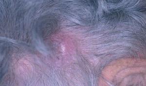 Fig. 6.Nódulo en cuero cabelludo correspondiente a un linfoma cutáneo primario B folicular.