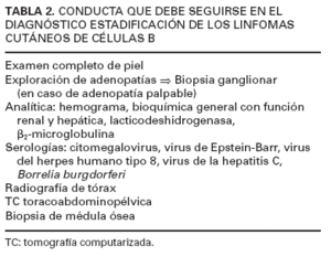 TABLA 2. CONDUCTA QUE DEBE SEGUIRSE EN EL DIAGNÓSTICO ESTADIFICACIÓN DE LOS LINFOMAS CUTÁNEOS DE CÉLULAS B