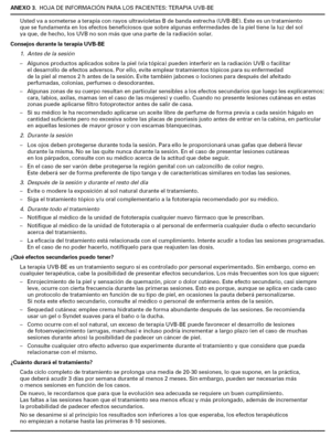En la tabla 9 se resumen los puntos que deben tenerse en cuenta de forma previa al inicio del tratamiento con terapia UVB-BE.