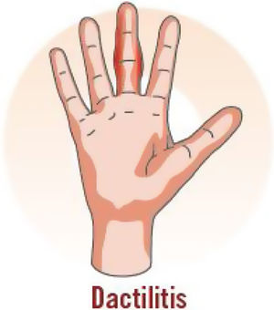 Dactilitis o signos clínicos que la sugieran.