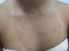 Se presenta el caso de una mujer de 21 años de edad con una erupción asintomática difusa en rostro y tronco de 3 meses de evolución. Dijo no tener fiebre ni ningún otro síntoma constitucional y la revisión de sus síntomas no fue contributiva. Informó no tener ningún antecedente médico o familiar. La única medicación que llevaba años tomando era norgestimato/etinilestradiol. La exploración física reveló pápulas y pequeños nódulos no foliculares, difusos y diseminados de colores vivos. Muchas de las lesiones mostraban indentación central que recordaba a una infección por molluscum contagiosum (figs. 1 y 2). No había presencia de linfadenopatía cervical, axilar ni inguinal. El análisis de la membrana mucosa no arrojó nada especial y las glándulas lacrimales no parecían agrandadas. El análisis histológico rutinario de la lesión en la región derecha del cuello reveló presencia de un infiltrado denso rico en células mononucleares dérmicas nodulares con un importante número de células plasmáticas y numerosos histiocitos multinucleados diseminados positivos para S100 acompañado, todo ello, de una marcada emperipolesis y eosinófilos discretos (fig. 3). El recuento completo de glóbulos rojos con índice de sedimentación eritrocítica, lactato deshidrogenasa, transaminasas hepáticas, alcalina fosfatasa, bilirrubina y creatinina dio negativo o dentro de los límites normales. Las imágenes por resonancia magnética torácicas y abdominales fueron normales. Recibió tratamiento con 60mg de prednisona oral que fue reduciéndose en el transcurso de 6 meses y que resultó en la resolución completa de las lesiones cutáneas. El seguimiento que se hizo 10 meses después del comienzo de la enfermedad confirmó la completa remisión del cuadro.