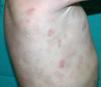 Clínica asociadaLas manifestaciones extracutáneas de este déficit de C1q incluyen la glomerulonefritis segmental mesangial, que es diferente a la nefritis típica del LES, síntomas neurológicos e infecciones recurrentes graves que se deben al déficit de la función de la vía clásica del complemento. En el análisis sanguíneo los niveles de CH50 y C1q en plasma son prácticamente de cero, sin embargo, los niveles de C2, C4 y C1 inhibidor son normales o elevados con positividad de los ANA, el FR y los anticuerpos anti-Sm. Las biopsias de las lesiones muestran vacuolización de la membrana basal con presencia de depósitos de IgG, IgM, IgA y C3 en la IFD. La asociación de una clínica similar al LES junto a una clínica de inmunodeficiencia es altamente sugestiva de la deficiencia de factores del complemento.
