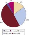 La edad media fue de 11,06. El mayor número de exéresis se situó entre los 12 y los 16 años, con 472 (47,39%) estudios histológicos. En menores de 1 año, tan solo se realizaron 34 extirpaciones (3,41%). La distribución del resto de extirpaciones por grupos de edad fue la siguiente: de >1 a ≤4 años: 66 (6,63%), de >4 a ≤8 años: 154 (15,46%) y de >8 a ≤12 años: 270 (27,11%) (fig. 3).