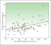 La estancia media hospitalaria fue de 10,20 ± 4,139 días, con un mínimo de 3 y un máximo de 29 días (rango: 26 días). Aplicando un modelo de regresión lineal simple hallamos diferencias estadísticamente significativas en la comparación con la variable «edad» y con la variable «valor de la VSG al ingreso», tal como detallamos a continuación. De tal modo, la comparación entre la edad y la estancia hospitalaria media arroja una diferencia estadísticamente significativa al nivel de 0,01 (p = 0,006). Además, tal como observamos en la recta de regresión trazada sobre el diagrama de dispersión (fig. 3), dicha relación es positiva y lineal. R toma el valor de 0,249, siendo la pendiente β igual a 0,054 y la constante k de 7,041, aumentando, por tanto, la estancia hospitalaria conforme se incrementa la edad.
