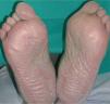 Todos los pacientes presentaban al menos lesiones palmares. Generalmente, la afectación palmar fue más precoz y más intensa en todos los casos, mientras que la plantar apareció más tarde y lo fue menos.