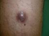 Presentamos un paciente varón de 57 años que acudió a nuestro servicio por la aparición hacía al menos 15 años de una placa pardusca asintomática de consistencia blanda en cara anterior del muslo izquierdo que lenta y progresivamente había aumentado de tamaño, adquiriendo una consistencia más dura y una coloración más oscura (fig. 1). Años más tarde, habían aparecido otras tres lesiones tipo placa de aspecto atrófico, de color marrón, en la región posterior de pierna derecha, en el muslo izquierdo y en la cresta ilíaca izquierda, que le recordaban en su inicio a la primera de las lesiones. No se acompañaban de sintomatología sistémica. La biopsia de la lesión nodular (figs. 2 y 3) mostraba fibrosis e infiltrados perivasculares intersticiales con linfocitos, células plasmáticas y neutrófilos con cariorrexis y proliferación vascular con trombos de fibrina intraluminales. Las pruebas analíticas mostraban IgA 384 (100–300) y IgM 78,9 (80–250), además de ferritina 402 (30–400), dato por el que se le había realizado un estudio para descartar hemocromatosis. El proteinograma y el resto de valores analíticos junto al electrocardiograma y la radiografía de tórax fueron normales. Las serologías de virus hepatotropos y de VIH fueron negativas. De acuerdo con el paciente, no se realizó tratamiento.