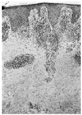 Fig. 3.--Infiltrado linfocitario perivascular en dermis superficial y media.