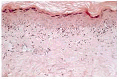 FIG. 2.--Infiltración linfocítica con borramiento de la unión dermoepidérmica.