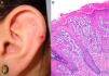 A 14-year-old girl with no past history of interest was seen for an asymptomatic lesion that had arisen on the helix of the auricle of her left ear 2 months earlier. The lesion had appeared during the month of August and had not changed since that time.