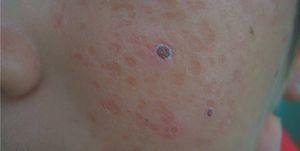 Se informó al paciente y a los padres de la necesidad de tomar medidas de fotoprotección solar. En la primera revisión tras el diagnóstico, las lesiones habían mejorado y no habían aparecido nuevas a pesar de estar en época estival.
