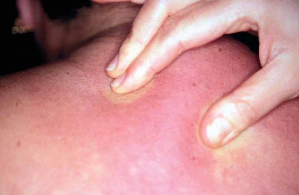 Fig. 1.--Dificultad para pellizcar la piel debido al endurecimiento cutáneo.