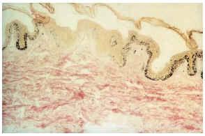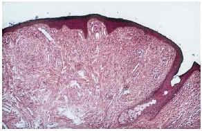 FIG. 2.--Angiofibroma: dilatación capilar y fibrosis dérmica.