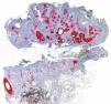 Mediante la inmunotinción con calretinina Lugli et al2 estudiaron 5.233 muestras de tejidos normales y tumorales, y estos autores no encontraron positividad en tumores anexiales de la piel (0 de 35 muestras), angiosarcoma (0 de 3), hemangioma capilar (0 de10), hemangioma epitelioide (0 de 2), tumor de células gigantes de la vaina tendinosa (0 de 29), tumor glómico (0 de 7), sarcoma de Kaposi (0 de 18), lipoma (0 de 35), histiocitoma benigno (0 de 13), dermatofibrosarcoma protuberans (0 de 3) y nevus melanocíticos (0 de 18) entre otros. Sin embargo, observaron ligera positividad en el carcinoma espinocelular (7,7 %) y melanoma maligno (4,7 %). En otro estudio se analizaron mediante hematoxilina-eosina y calretinina 24 quistes foliculares sin encontrar inmunorreactividad para la calretinina3.