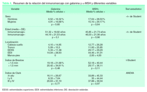 Relación entre la expresión de galanina y α -MSH con variables clínicas