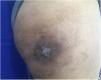 Clinical caseA 25-year old female with 22-days postpartum consulted presenting a 7-month history of a rapidly growing mass on the right thigh. The patient indicates fatigue and associated pain and bleeding of the mass. Physical examination revealed a 5-cm firm erythematous mass, with hematic crust on the surface surrounded with a peau d'orange erythematous halo. (Fig. 1).