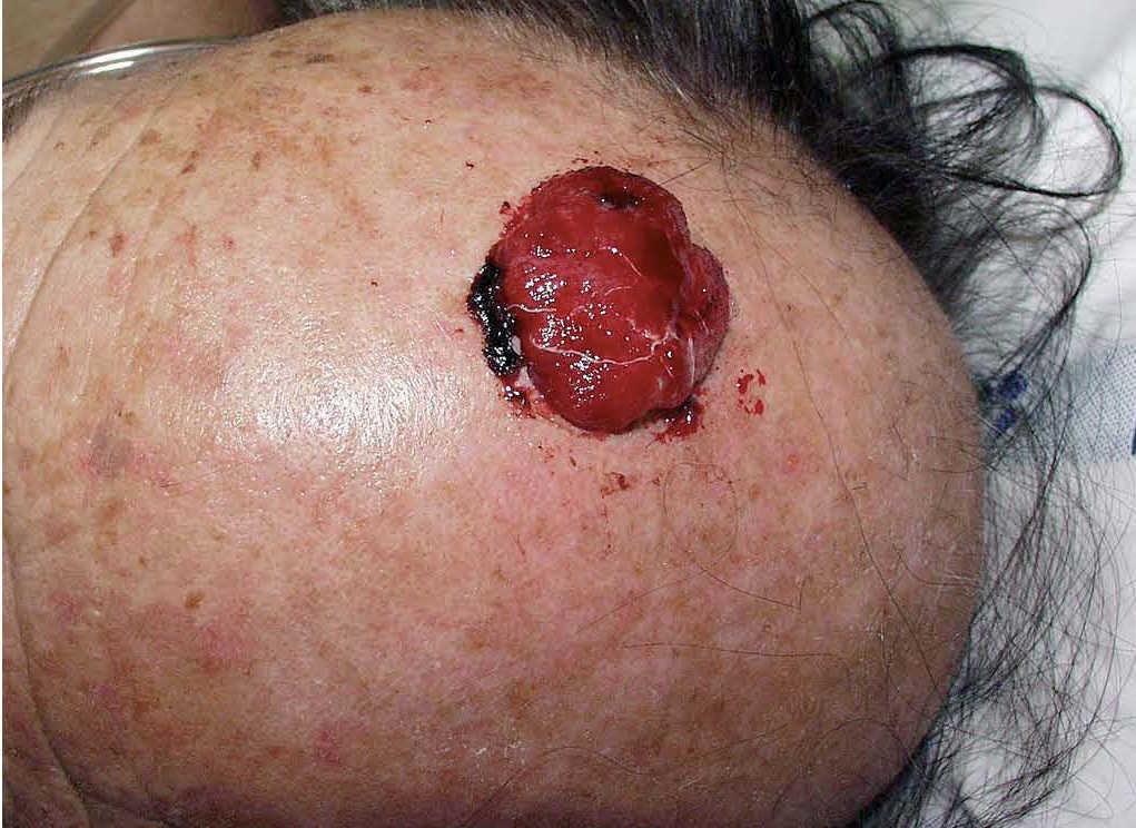 Fig. 2.—Gran masa tumoral, carnosa, friable y sangrante en cuero cabelludo.