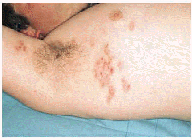 Las lesiones acaecidas tras la infección herpética aparecen siguiendo la misma o mismas metámeras que la infección herpética previa. La demostración mediante PCR del ADN del VVZ en las lesiones cutáneas no debe ser considerada como diagnóstica, en tanto que, por norma general, sólo es posible su determinación en aquellas lesiones que aparecen poco tiempo después de la infección herpética3, 6, 9. Esto podría justificarse porque las lesiones tardías estarían inducidas por las glucoproteínas de la envoltura vírica del VVz que no pueden detectarse mediante PCR8.