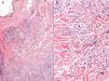 In the first case we report, the biopsy specimens revealed various histopathological patterns developing in parallel, thus demonstrating a histological spectrum within this reactive process.
