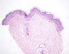 HistopatologíaLas secciones histológicas de la biopsia de una de las lesiones mostraron discreta hiperqueratosis sobre una epidermis con elongación e hiperpigmentación de las crestas interpapilares, ocasionales quistes córneos de pequeño tamaño y melanófagos en dermis superficial (fig. 3).