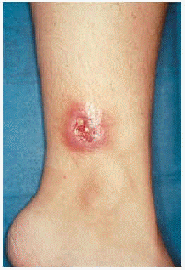 Fig. 1.--Lesión abscesificada en cara interna de pierna.
