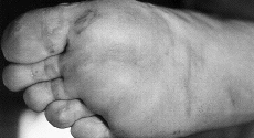 FIG. 1.--Caso 1. Lesiones vesiculoampollosas en los dedos y serpiginosas en la planta.