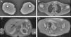 Blood tests showed a normal fasting blood glucose, elevated very low-density lipoproteins (around 65mg/dL), triglycerides of 250 to 300mg/dL, and decreased high-density lipoprotein (HDL) levels (around 32mg/dL) despite her lipid-lowering treatment. Creatine kinase values were increased to 250 to 350IU/L in serial blood tests (normal range, 1-167 IU/L), and lactate dehydrogenase and the transaminases were within normal limits. Autoimmunity studies were positive for antinuclear antibodies (titer, 1/160) and for anti-Ro/SSA. Other antibodies (SSB, Smith, ribonucleoprotein, Jo1, antineutrophil cytoplasmic antibody, and antiglomerular basement membrane) were negative. Diabetes mellitus with hyperinsulinemia was diagnosed on the basis of an abnormal oral glucose tolerance test associated with elevated levels of insulin and C-peptide. Complement (C3 and C4), protein electrophoresis, immunoglobulins, and the other hormones studied (testosterone, follicle stimulating hormone, luteinizing hormone, prolactin, dehydroepiandrosterone sulfate, androstenedione, intact parathyroid hormone, growth hormone, cortisol) presented values within normal limits. Serology for human immunodeficiency virus and hepatitis B and C viruses was repeatedly negative. Gastrointestinal absorption studies revealed no abnormalities, as no fats, proteins, or sugars and no parasites were found in the feces; the albumin, vitamin B12, folic acid, ferritin, and transferrin levels were within normal limits. Antigliadin and antitransglutaminase antibodies were not detected. The presence of underlying neoplastic disease was excluded on the basis of various imaging studies (high-resolution thoracic computed tomography, abdominal ultrasound, and parathyroid nuclear scan) and repeatedly negative tumor markers. The body fat percentage (measured by impedancemetry) was 16.4% (normal range, 25%-30%). An ultrasound study showed symmetrical loss of the adipose tissue, which had a maximum thickness of 2.9mm. T1-weighted magnetic resonance imaging demonstrated an almost complete absence of subcutaneous fat, with preservation of intra-abdominal and bone-marrow fat (Fig. 2). An electromyogram revealed a myopathic pattern, with shorter and low-amplitude motor-unit potentials associated with some fibrillation potentials. The patient was diagnosed with AGL on the basis of the combined data from the history, physical examination, and additional tests. Since diagnosis, the patient has been treated jointly in the dermatology and nutrition departments, with the administration of various antidiabetic drugs, including the thiazolidinediones, and lipid-lowering drugs with the aim of achieving good control of her multiple metabolic disorders.